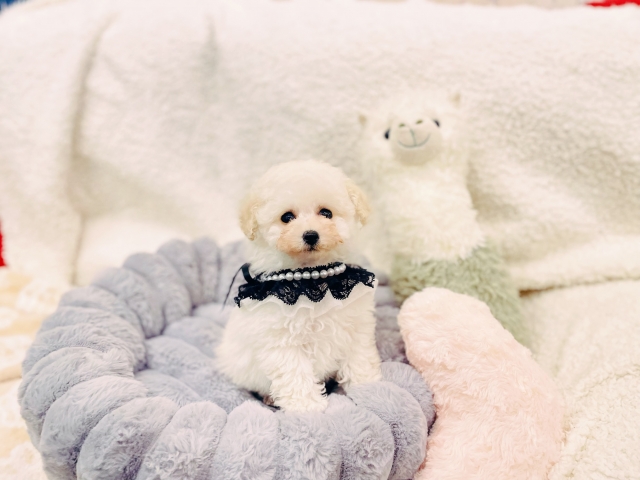 | コメント | お写真通りまん丸くりくりな大きな瞳と詰まったマズル(鼻口)が可愛すぎます。 両親共ティーカップサイズで健康優良児です 全体的に体パーツが詰まって小ぶりなコンパクトサイズ ※プードルは抜け毛がほとんどありませんので小さなお子様のいるご家庭にはオススメの犬種になります。 性格はとっても甘えん坊さんでとても人懐っこい子なため 初めてワンちゃんを飼われる方にもおすすめですよ! 現在,社会勉強中で他のワンコとも仲良く出来て,人見知りもなく優しいいい子に 育ってくれてます! 詳しくはお気軽にお問合せ下さい 繁殖不可。一般家庭様のみお譲りします |