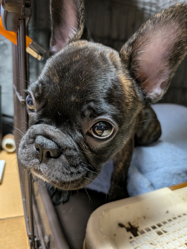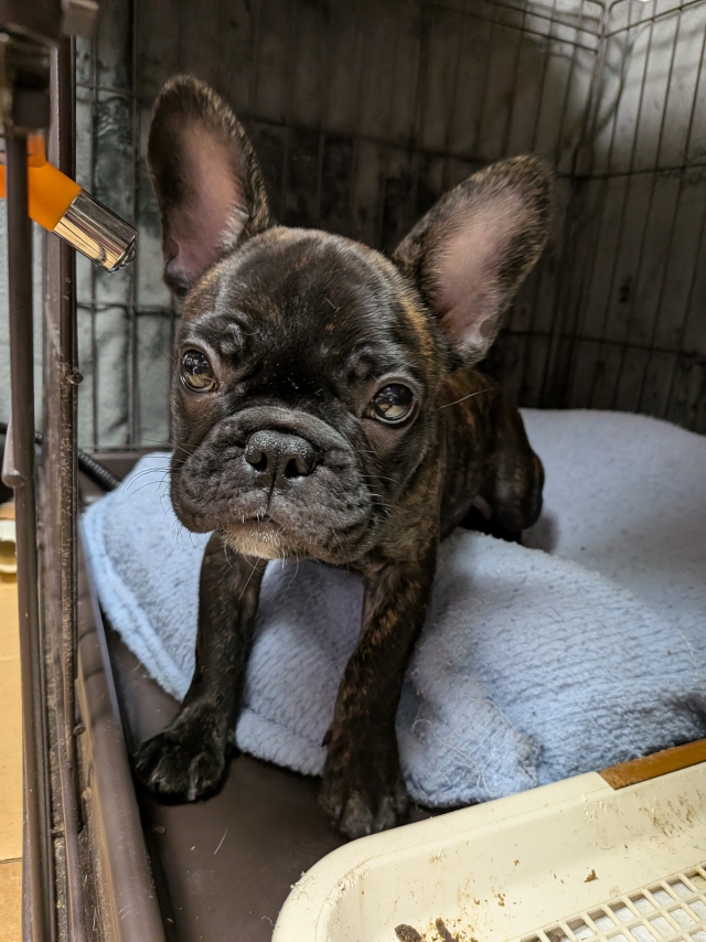 | コメント | 可愛い顔立ちのブリンドル女の子。トイレも上手にでき夜もおとなしく寝る様になりお利口さんです。健康診断で健康優良児でしたがデベソ(臍ヘルニア)があり大きくなっても治らない場合はご相談下さい。避妊手術の時に治す手術ができます。 |