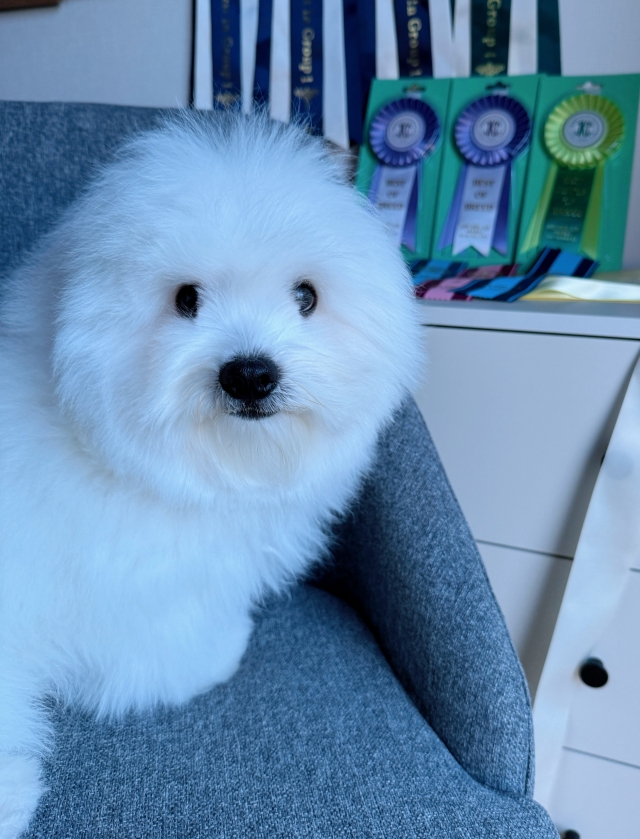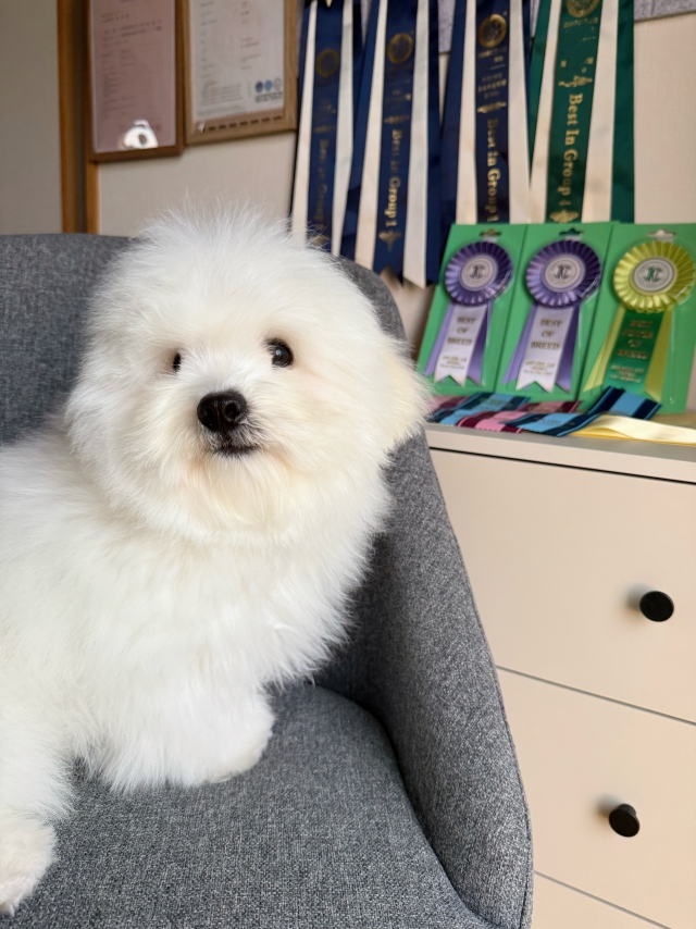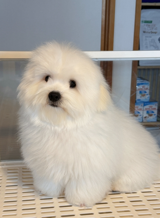 | コメント | 写真だけじゃ伝わらない、実物を見ないと後悔するレベルの可愛さ!!! 日本で超希少なコトン・ド・テュレアールとビションフリーゼの子です。 毛量が非常に豊かで、ふわふわでもこもこ、まるで綿(コットン)のように柔らかい被毛が自慢の子です 。 パパは韓国KKFチャンピオンのコットン・ド・テュレアール、ママはminiタイプのビション・フリーゼです ! コトン・ド・テュレアールは、綿のようにふわふわとした白い被毛が特徴の小型犬です。 原産国はマダガスカルで、世界的にも希少な犬種とされています。 日本国内では登録頭数がまだ非常に少なく、入手が難しい“希少犬種”として知られています。 柔らかいコットンのような被毛は抜け毛が少なく、匂いもほとんどないため、室内飼育にも適しています。 温厚で人懐っこい性格を持ち、家族に寄り添うコンパニオンとして理想的な犬種です。 日本ではまだ出会う機会が限られる貴重な存在として、近年注目されています。 もしご縁がございましたら、ぜひ当犬舎で実際に触れ合い、希少な血統を体感してください。 あるパパ譲りの豊かな毛量とショークオリティの美しさに、ママから受け継いだコンパクトな体型が魅力の子です。 体は小さめながら骨量がしっかりしており、抜け毛が少なく体臭もほとんどありません。運動量も多くは必要とせず、マンションやアパートなどの室内飼いにも適したタイプです。 白い毛色ですが汚れにくく、毛が絡まりにくいのでお手入れもらくらく♪ 元気いっぱいで遊ぶのが大好き、 人が大好きな明るく愛らしい性格です。 初めて犬を迎えるご家庭にも安心しておすすめできます~~ |