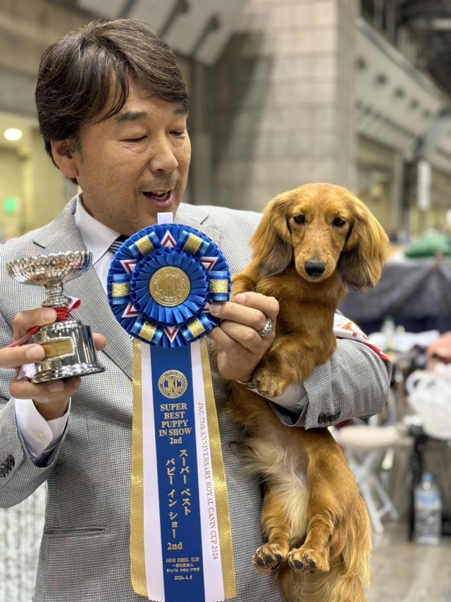 色々とご無理を言っても親切に対応して頂きました。ドッグショーなどで忙しいなかでも、返事をくださり大変ありがたく思います。やっと仔犬が家族の一員なりとても嬉しく思います。ダックスを購入されたい方おすすめしたいです。(兵庫県 男性)